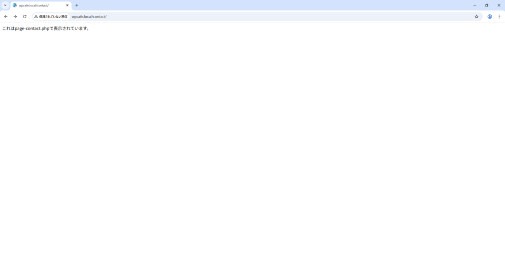 それぞれのページで、「これは〇〇.phpで表示されています」というメッセージが表示されていれば成功です。各ページで異なるテンプレートファイルが正しく適用されていることが確認できます。